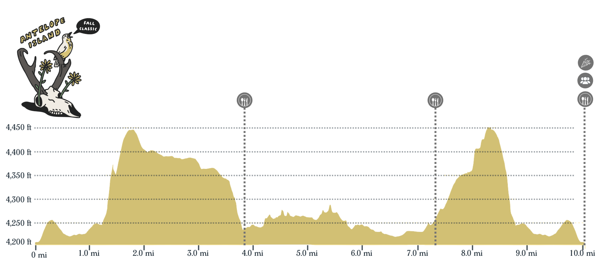 The race begins at the marina on the island’s north end. From there, you’ll head south for roughly 11.5 miles along the Mountain View Trail, an open, gently rolling stretch with the Great Salt Lake glittering to your side and the Wasatch Range rising in the distance. Your first major stop is the Ranch aid station, tucked near the southern tip of the island.
